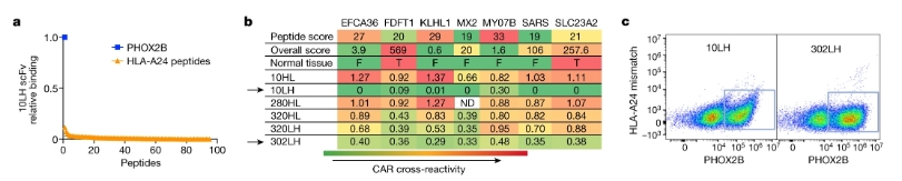 Due to the lack of immunogenicity of self-antigens, after no high-affinity TCR was found in multiple screenings, researchers chose to develop scFv-based CARs, namely peptide-centric chimeric antigen receptors (PC-CARs). First, scFvs that can bind to pMHC were selected by flow cytometry, and clones showing obvious selectivity were further tested. Finally, two scFvs with the strongest specific binding to antigen peptides were screened: 10LH and 302LH (Figure 3), and peptide-centric chimeric antigen receptors T cells (PC-CAR T) were developed.
