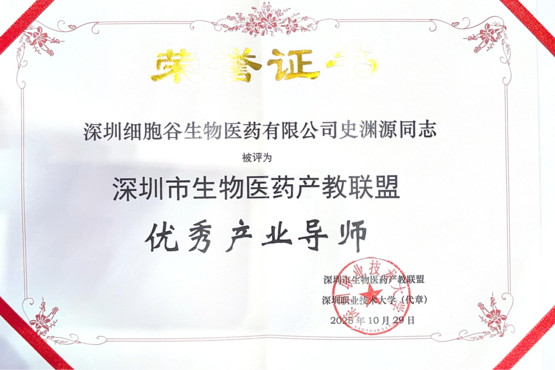 深圳evo真人视讯自 2023 年出任深圳市生物医药产教联盟副理事长单位以来,持续构建“科研—转化—人才”闭环:联合深职大等高校编撰教材、开设相关理论及实践本科课程,颁发职业技能等级证书,年均培养生物医药产业人才 30+,从源头缓解行业用工瓶颈。董事长史渊源教授表示,公司将以此份荣誉为动力,继续深化产教协同,打造细胞治疗产业人才高地,为细胞治疗领域开展贡献力量。