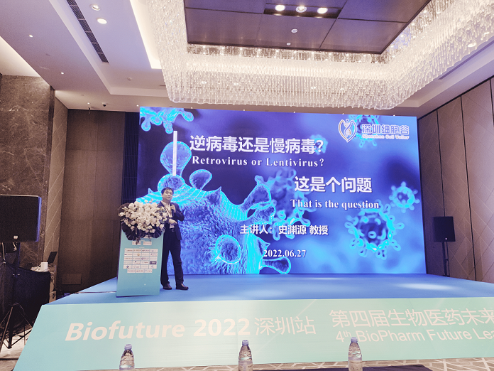 From June 27 to 28, 2022, the 4th Biomedicine Future Leaders Summit 2022 was held in Shenzhen, Guangdong, as scheduled. Professor Shi Yuanyuan, the founder of Shenzhen Cell Valley, was invited to participate in the meeting and published "Retrovirus or Lentivirus? That is the question." This is a wonderful keynote speech to discuss the industrial production of different virus vectors in cell therapy. 2022年6月27日—28日,Biofuture 2022第四届生物医药未来领袖峰会在广东深圳如期举行,深圳evo真人视讯创始人史渊源教授受邀参会,并发表题为《Retrovirus or Lentivirus? That is the question.》(逆病毒还是慢病毒载体?这是个问题。)的精彩主题演讲,探讨不同的病毒载体在细胞治疗中的工业化生产问题。