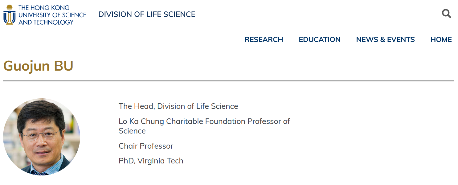 (Screenshot of Professor Bu Guojun's profile on the HKUST official website)