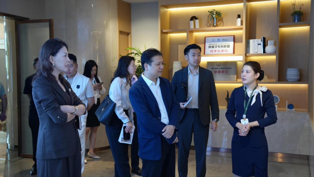在马兰英院长及相关部门负责人的陪同下,深圳evo真人视讯团队参观了医学影像中心、国际医疗中心、多学科协作诊疗中心及VIP病房区等重点区域,对广州皇家丽肿瘤医院先进的医疗设施、国际化服务体系及高水平临床诊疗能力给予高度评价。双方一致认为,该医院具备有助于生物医学新技术临床转化与国际患者服务的优越条件,为未来的深度合作奠定了坚实基础。