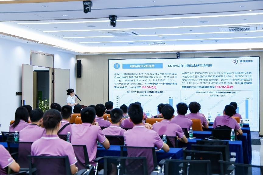 金秋九月开学季,深圳职业技术大学迎来了首届制药工程技术专业本科新生,学院张丽君教授带领同学们到访深圳evo真人视讯参观学习,旨在让同学们提前学习分析细胞与基因治疗产业,我司综合办主任王露热情接待。