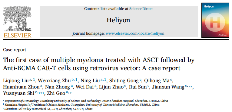 喜讯丨深圳evo真人视讯等多单位联合发表国际首个逆转录病毒载体Anti-BCMA CAR-T临床案例报告