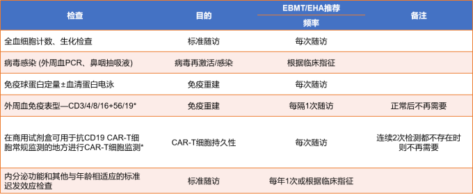 长期随访应由一个多学科团队 (CAR-T医生、特定疾病专家、长期随访护理人员、数据管理员、临床研究人员)进行,以获取疾病状态和迟发效应。长期血细胞减少、低丙种球蛋白血症和感染是常见的;神经系统并发症和肺毒性增加死亡风险;继发性恶性肿瘤罕见。